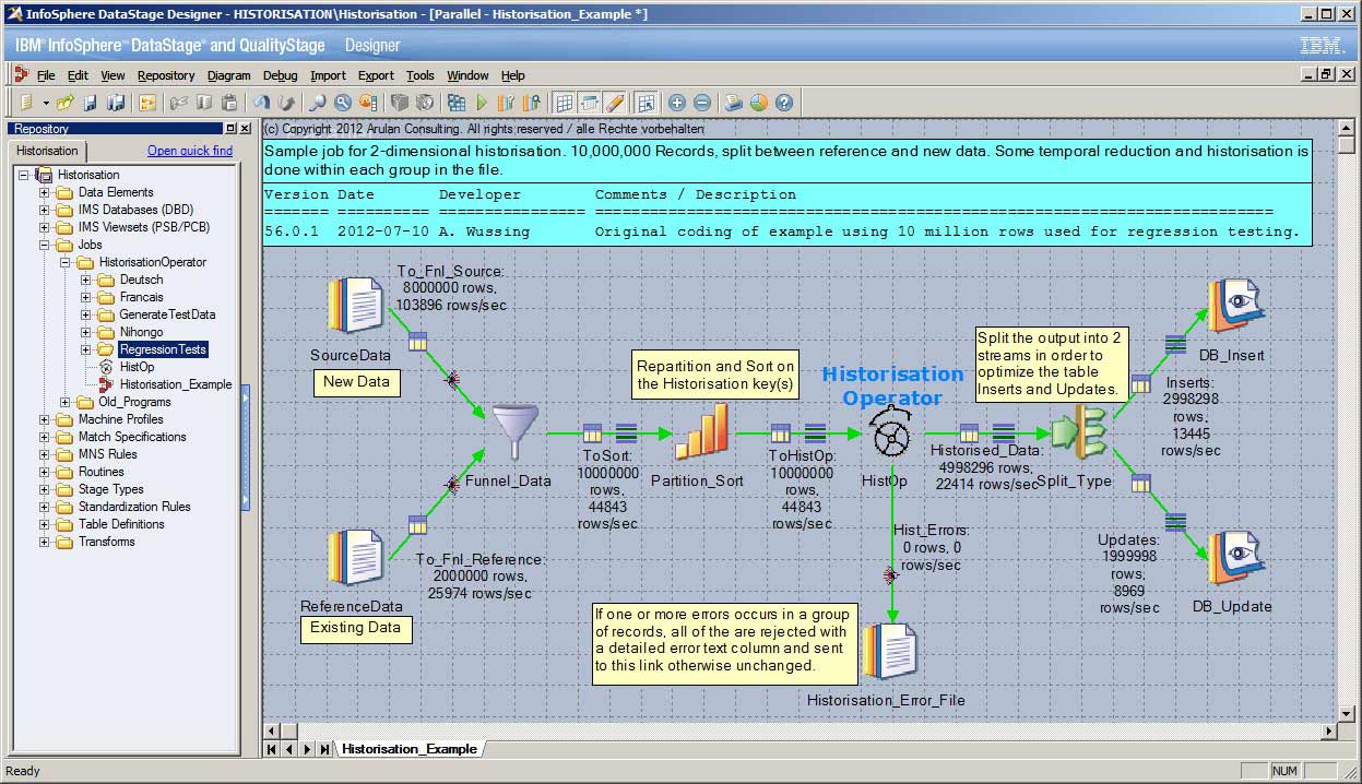 While the query side is straightforward, and the database only needs some additional columns; ensuring that changes are historised correctly involve several computational steps and this site offers a DataStage operator called the “Hist-Op” which allows a flexible implementation of a 2-dimensional model to be efficiently used with DataStage.